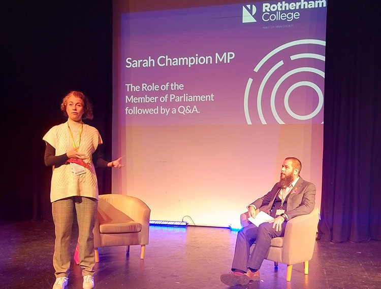 โI am delighted to have had both members of the Civil Service who develop policy for Parliament and Government, we well as a member of Parliament here at Rotherham college to speak with learners about the role of Parliament and politics today.